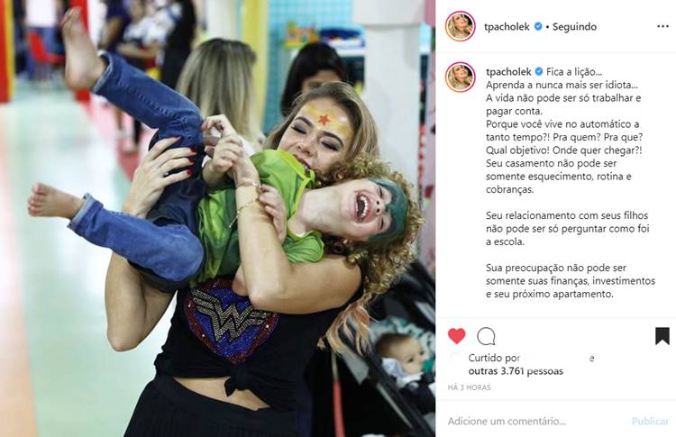A mulher do sertanejo Belutti, Thais Pacholek usou seu Instagram para postar um texto emocionante, sobre a importância de ‘viver a vida’.
