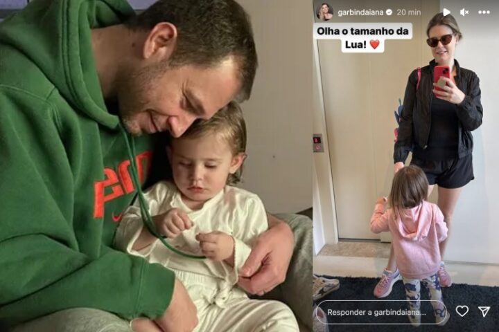 No registro fotográfico, Daiana Garbin e Lua Leifert surgem no interior de um elevador, bem cedo, para um compromisso. Impressionada com o rápido desenvolvimento da criança, a jornalista chamou a atenção do público quanto a isso. “Olha o tamanho da Lua”, comemorou.