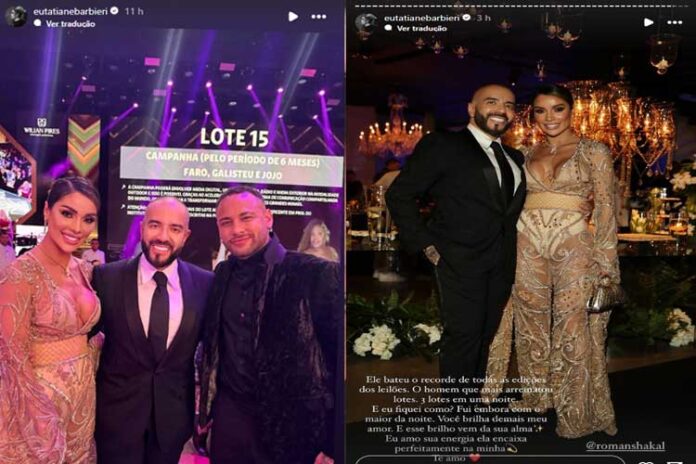 Através de seu Stories no Instagram, Tati falou sobre a experiência, dizendo que Neymar é dono de um grande brilho. “Ele bateu o recorde de todas as edições dos leilões. O homem que mais arrematou lotes. Três lotes em uma noite. E eu fiquei como? Fui embora com o maior da noite. Você brilha demais, meu amor. E esse brilho vem da sua alma. Eu amo sua energia, ela encaixa perfeitamente na minha. Te amo”, escreveu.