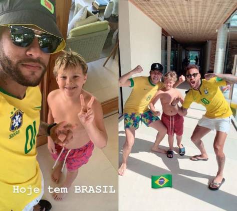Nos stories de seu Instagram, o jogador publicou dois registros, um ao lado de seu filho Davi Lucca e um outro, ao lado de um amigo e do seu herdeiro. Na foto, ele escreveu: “Hoje tem Brasil”.