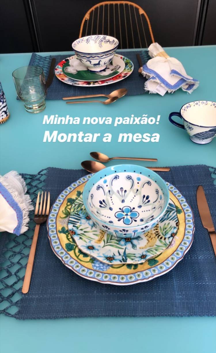 No Stories do Instagram, Bruna postou a foto de uma mesa toda arrumada, onde tinha copos, talheres, pratos e xícaras. “Minha nova paixão! Montar a mesa”, escreveu a artista.