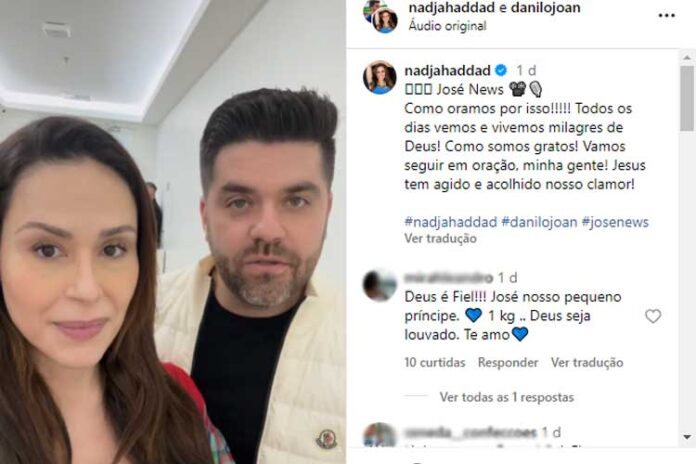 Nadja Haddad surgiu ao lado do marido, Danilo Joan, neste domingo (16) e divulgou uma ótima notícia sobre o filho, José, internado desde o nascimento. Através de um vídeo compartilhado em seu perfil no Instagram, a apresentadora disse que o que estavam esperando finalmente aconteceu.