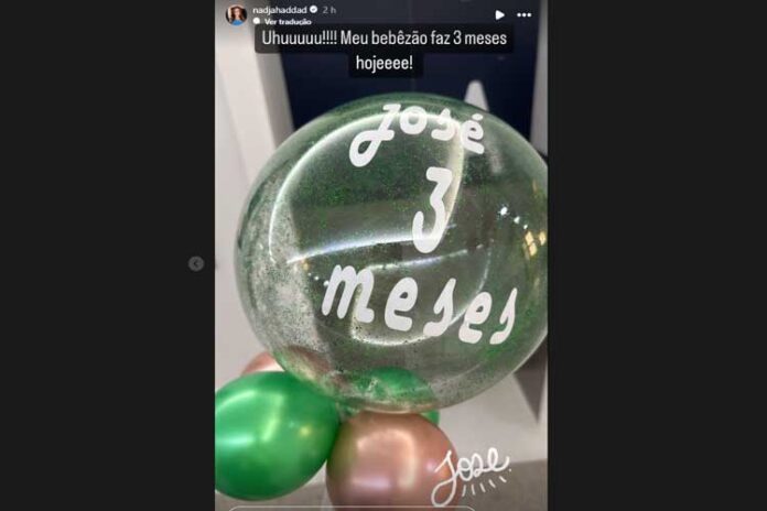 O pequeno ganhou balões em comemoração aos seus três meses de vida. “Meu bebezão faz 3 meses hoje!”, escreveu na legenda. Nos últimos dias, Nadja divulgou uma boa notícia a seus seguidores, afirmando que tentou amamentar José pela primeira vez.