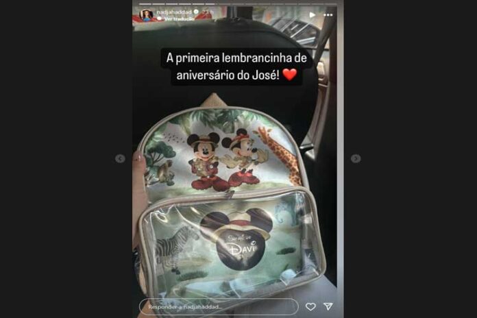 A apresentadora mostrou o primeiro presente do herdeiro, uma linda mochila com a temática dos personagens da Disney, Mickey e Minnie. “A primeira lembrancinha de aniversário do José!”, escreveu Nadja na legenda, mostrando o mimo.