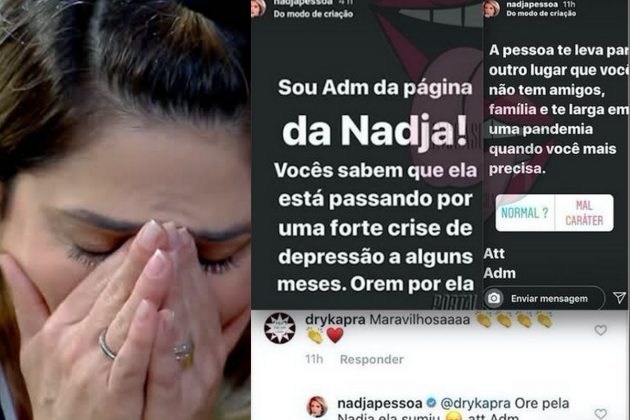 Em publicações feitas no Instagram da personalidade famosa, a equipe escreveu, evidentemente preocupada, no recurso Stories do Instagram. “Sou adm da página da Nadja! Vocês sabem que ela está passando por uma forte crise de depressão há alguns meses. Orem por ela”, dizia a publicação. Nos comentários, o perfil de Nadja escreveu, em resposta a um internauta que a elogiava em seu click mais recente: “Orem pela Nadja, ela sumiu”.