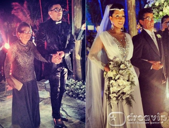 O cantor Naldo e Ellen Cardoso, a Mulher Moranguinho se casaram em uma casa de festas na Zona Oeste do Rio de Janeiro, na noite de segunda (23).
