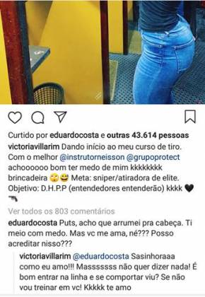 Victória Villarim, a namorada do sertanejo Eduardo Costa, revelou através de seu Instagram, que está fazendo um curso de tiro.