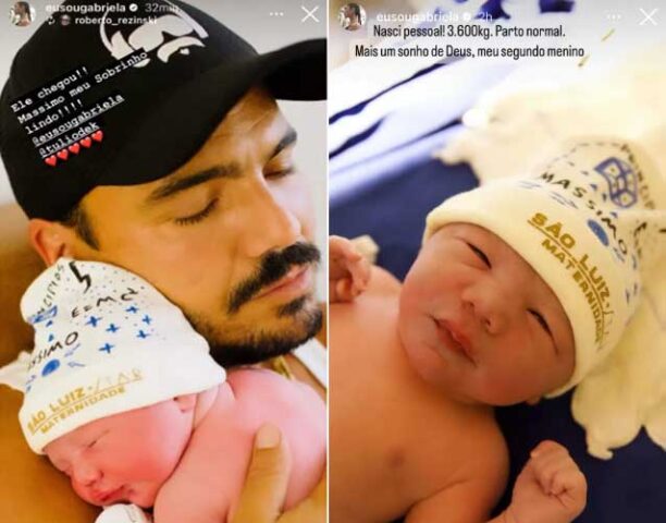 Na legenda, Gabriela revelou que o herdeiro veio ao mundo pesando cerca de 3.600 kg através de parto normal. “Nasceu, pessoal. 3.600 kg. Parto normal. Mais um sonho de Deus, meu segundo menino”, disse na legenda da publicação.