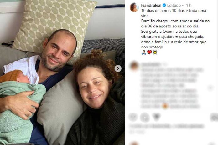 “10 dias de amor. 10 dias e toda uma vida. Damião chegou com amor e saúde no dia 06 de agosto, ao raiar do dia. Sou grata a Oxum, a todos que vibraram e ajudaram nessa chegada, grata à família e à rede de amor que nos protege”, destacou a atriz na legenda, recebendo o carinho de seus seguidores nos comentários da publicação.