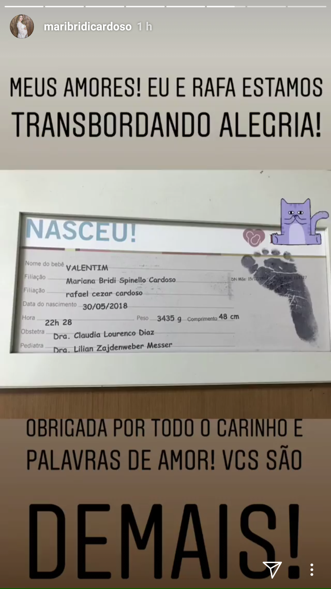 Mariana anunciou o nascimento do bebê nas redes sociais na manhã desta quinta-feira. O pequeno chegou ao mundo com 3345 kg e 48 cm. Parabéns ao casal!