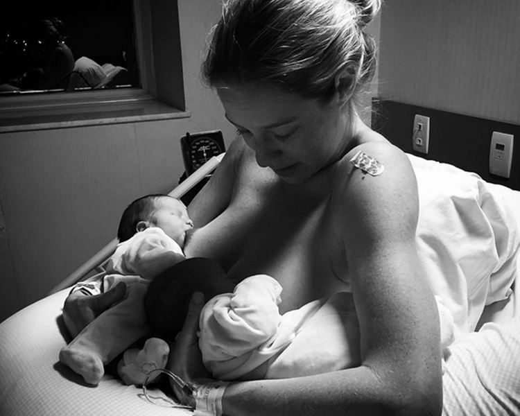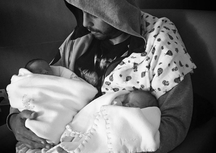 “Numa noite de lua cheia, minha lua particular deu luz a duas estrelas”, escreveu o surfista.
