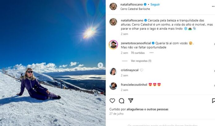 Há cerca de duas semanas, Natália posou em cliques diretamente de Cerro Catedral, em Bariloche. Na ocasião, ela curtiu férias com os filhos no local, sem Zé Neto. Na época, ela chegou a legendar: “Cercada pela beleza e tranquilidade das alturas. Cerro Catedral é um sonho, a vista do alto é incrível.. mas parar e olhar para o lago é ainda mais lindo“, destacou.