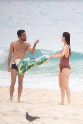 +Nathalia Dill é flagrada curtindo folga nas areias cariocas