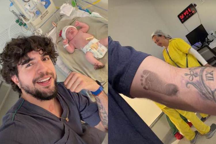Nos stories de seu perfil no Instagram, o cantor publicou alguns registros da herdeira. Ela ainda mostrou que tatuou o pezinho de Zuza no braço na maior felicidade.
