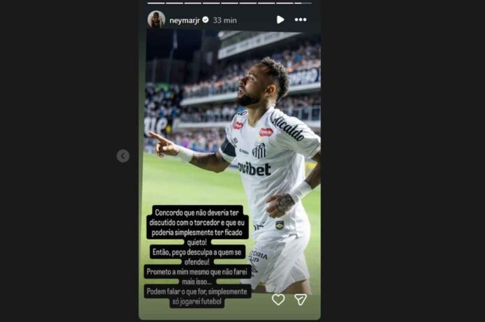 Neymar Jr usou o seu perfil no Instagram, nesta quarta-feira (15), para pedir desculpas após discussão com torcedor em empate do Santos contra o Recoleta. O jogador admitiu ter cometido um erro, afirmando que poderia ter ficado quieto no momento do ocorrido.