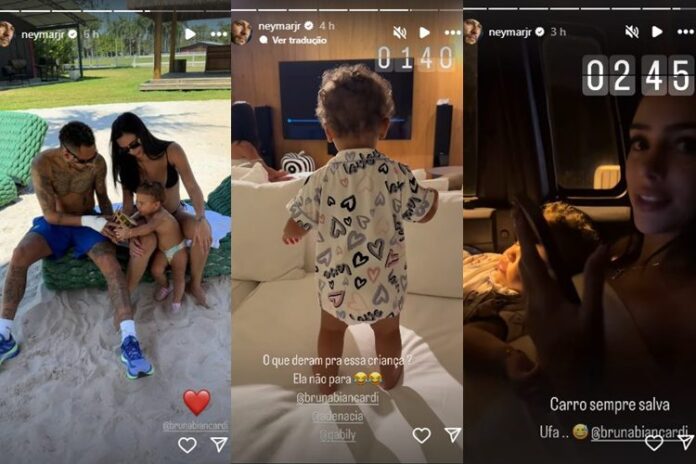 “O que deram pra essa criança? Ela não para hahahah“, escreveu ele, mostrando a filha pulando no sofá. O casal, então, decide dar um passeio de carro quase 3h da madrugada para, assim, Mavie pegar no sono. E deu certo! “Carro sempre salva. Ufa…“, comemorou Neymar.