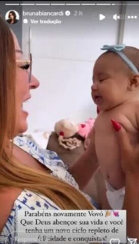 Por meio dos stories no Instagram, Bruna não deixou de prestar a sua homenagem a Nadine, sua ex-sogra e mãe do menino Ney. “Parabéns novamente Vovó. Que Deus abençoe sua vida e você tenha um novo ciclo repleto de felicidade e conquistas!”, escreveu ela ao compartilhar um vídeo de Nadine com a neta, Mavie.