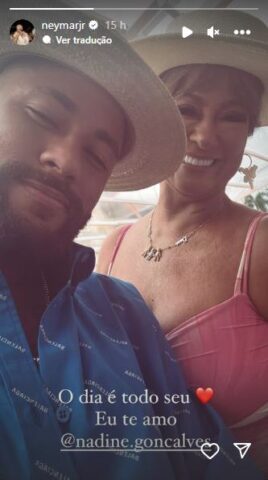 Por meio dos stories no Instagram, Neymar Júnior compartilhou um clique onde surge ele e Nadine Gonçalves, onde o mesmo declara: “O dia é todo seu. Eu te amo @NadineGonçalves“, iniciou ele.
