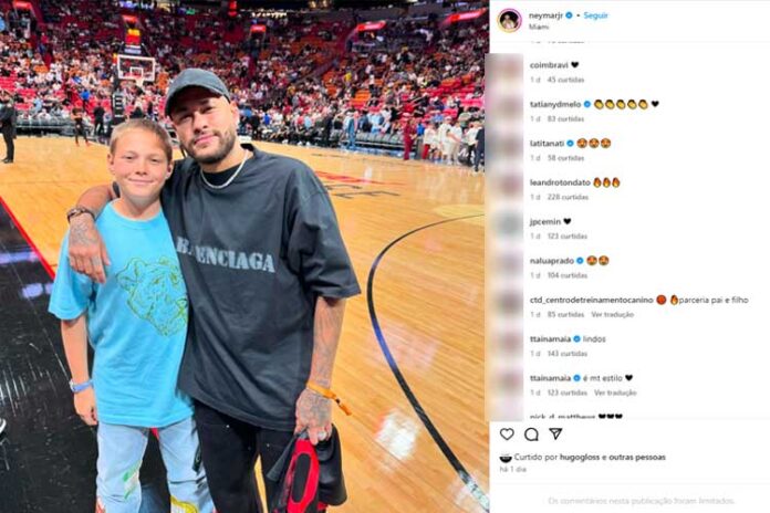 Ele cresceu! Davi Lucca apareceu em um clique recente ao lado do pai, Neymar Jr., chamando a atenção dos seguidores do jogador pelo tamanho. Na imagem, ambos aparecem juntos curtindo um jogo de basquete, ganhando o carinho do público nos comentários.