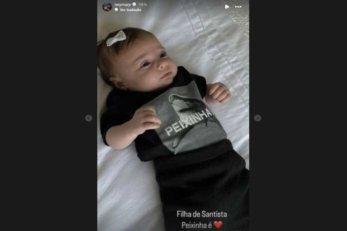 O papai coruja ainda destacou que a herdeira também é santista, ao mostrá-la com um conjunto escrito “Peixinha”. “Filha de Santista, Peixinha é”, afirmou na legenda, adicionando um emoji de coração.