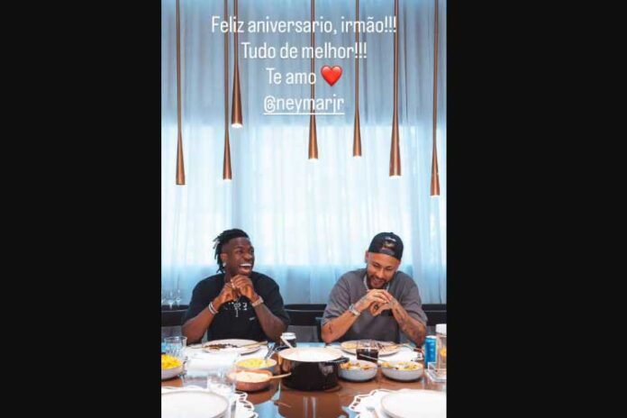 “Feliz aniversário, irmão. Tudo de melhor. Te amo”, disse Vini publicando um registro ao lado do jogador do Santos. Anteriormente, Bruna Biancardi também celebrou a data com uma declaração publicada em seu perfil no Instagram.