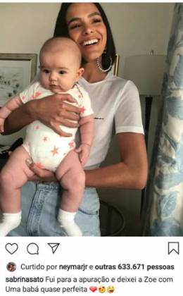 “Fui para a apuração e deixei a Zoe com uma babá quase perfeita”, escreveu Sabrina na legenda da sua publicação. Logo, os internautas usaram os comentários do post, para criticar Nemar pelo ‘like’, já outros zoaram o mesmo.