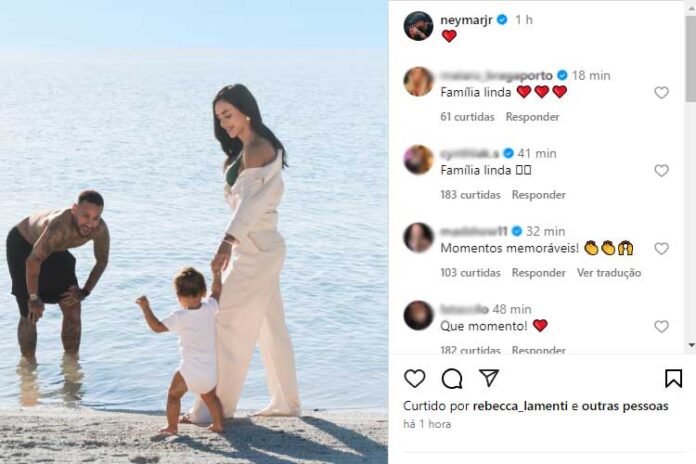 Mavie, filha de Neymar e Bruna Biancardi, completou 1 ano de idade. O jogador compartilhou nesta segunda-feira (07) um lindo registro em que aparece ao lado da família caminhando na praia.