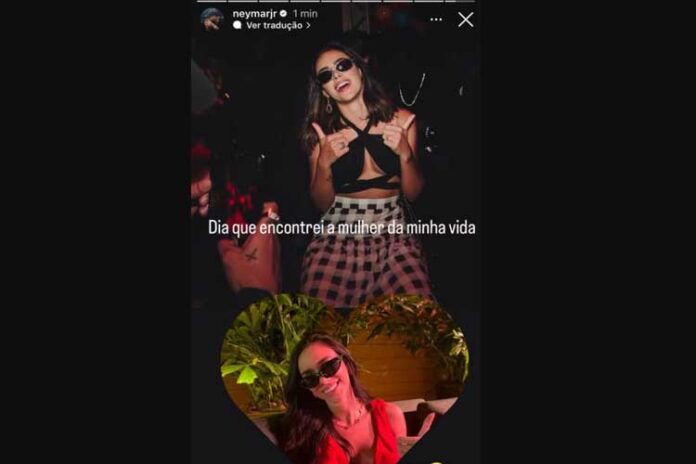 Neymar compartilhou em seu perfil no Instagram neste domingo (22), um registro do dia em que conheceu Bruna Biancardi. Apaixonado, o jogador ainda aproveitou para se declarar a amada, afirmando que ela é a “mulher de sua vida”.