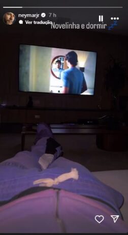 De acordo com informações do colunista Leo Dias, Neymar estaria no meio de uma crise conjugal depois de ser flagrado em uma festinha com outras mulheres e amigos no interior de São Paulo. No entanto, ironizando os boatos de crise e possível ‘traição’, o jogador compartilhou uma foto em que aparece deitado assistindo a novela ‘Mania de Você’, exibida pela TV Globo, escrevendo na legenda: “Novelinha e dormir”.