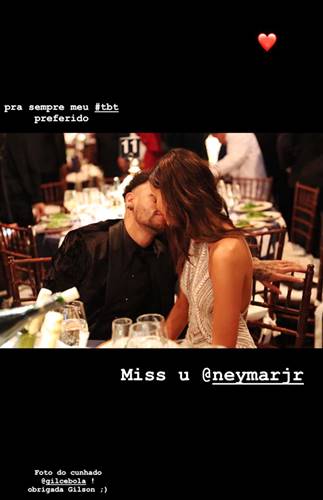Na imagem, a atriz e o jogador aparecem rindo, trocando carinhos e beijinhos. Na legenda, o craque só marcou o nome da amada com um coraçãozinho.