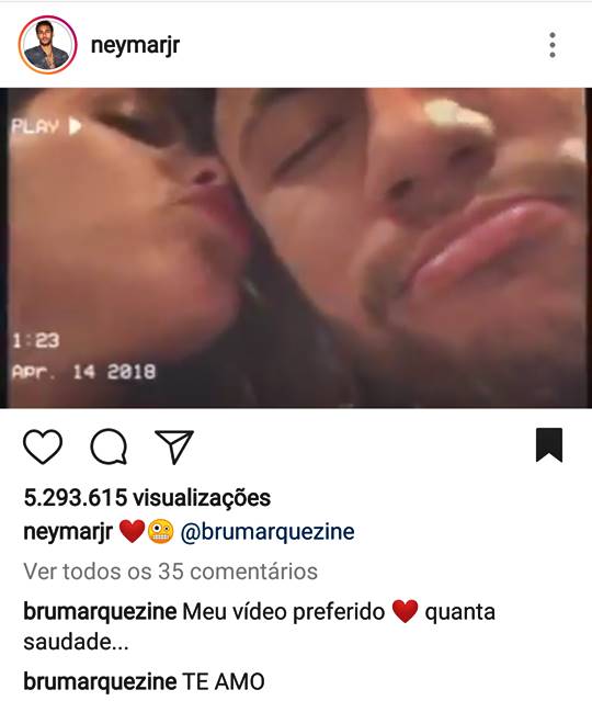 Bruna respondeu no comentário: “Meu vídeo preferido, quanta saudade….Te Amo“, escreveu a gata, já que o craque voltou para Paris, após passar uma temporada pelo Brasil, para se recuperar da cirurgia no joelho.
