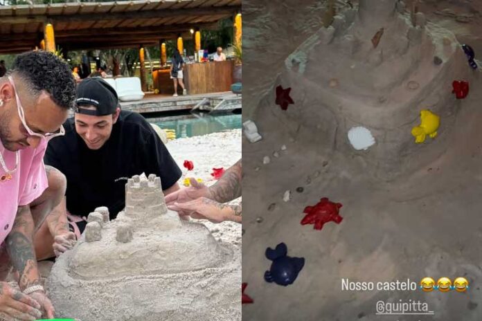 Neymar aproveitou o Carnaval para resgatar a infância através de uma brincadeira divertida ao lado de amigos na praia. Em Stories publicados pelo jogador do Santos em seu perfil no Instagram, ele aparece fazendo um castelo de areia ao lado de seus “parças”.