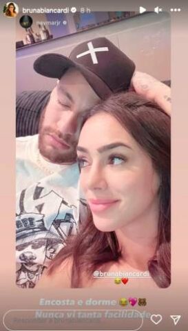 Dessa forma, por meio dos stories do Instagram Neymar compartilhou um clique com Bruna Biancardi, aonde surge cochilando no ombro da amada. No entanto, a influenciadora aproveitou a imagem para repostar nos stories e revelar que o namorado ‘sempre dormia’ ao colar no seu ombro.