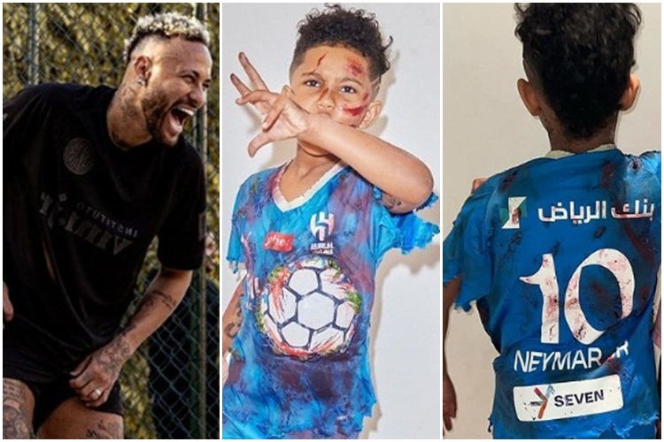O pequeno, fruto do relacionamento da influenciadora com Kanye West, apostou no uniforme do Al-Hilal, time que o jogador brasileiro faz parte, com rasgos e machucados falsos pelo corpo e batizou a fantasia de ‘Neymar Zumbi’. Ele aparece ao lado de outra criança, que se inspirou em Messi para a festa.
