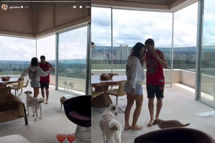 Sabrina Sato e Nicolas Prattes caíram no samba durante churrasco de família realizado neste domingo (02). O casal foi flagrado por Giselle Prattes, mãe do ator, sambando ao som da canção “Trem das Onze”.
