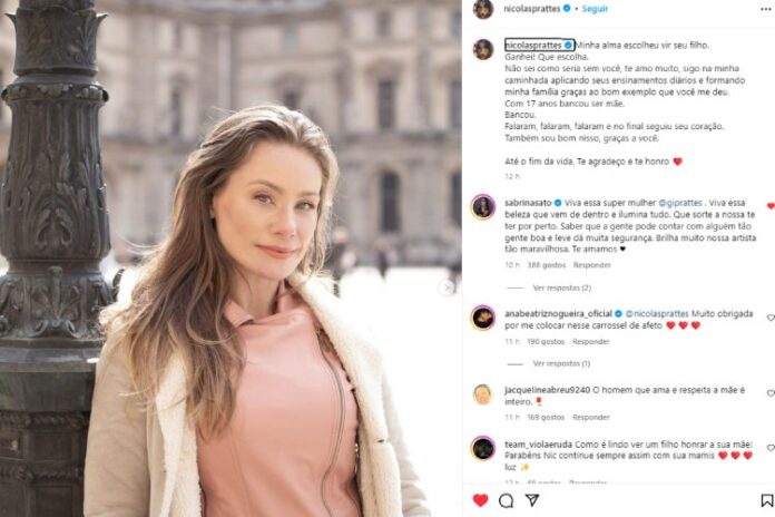 Neste sábado, 28 de setembro, Nicolas Prattes usou as redes sociais para fazer uma homenagem a sua mãe, Giselle Prattes, que está completando mais um ano de vida. O ator compartilhou vários cliques memoráveis ao lado da matriarca com direito a uma declaração de tirar o fôlego. Sabrina Sato, apresentadora e noiva do artista, também deixou uma mensagem fofa para a sogra.