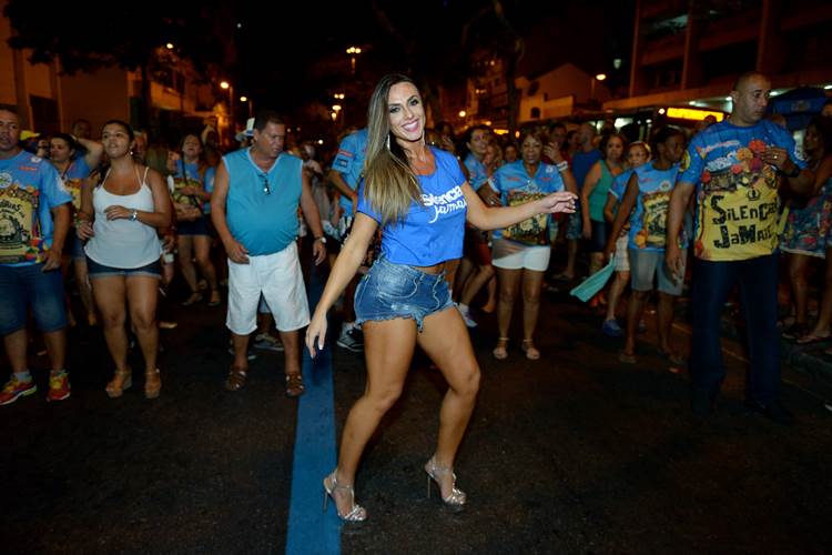 A noite de domingo, 20 de dezembro, foi especial para Nicole Bahls. A apresentadora acertou sua participação como musa da Unidos de Vila Isabel no carnaval de 2016 e já participou do ensaio de rua da escola. Nicole caprichou na produção, um vestido azul de franjas, bem curto, para conversar com o presidente da Azul e Branco, Luciano Ferreira. O que ela não esperava era que o dirigente já a convidasse para participar do ensaio da escola, que começou por volta de 22h no Boulevard 28 de Setembro, principal via de trânsito do bairro de Vila Isabel, onde a escola realiza treinos técnicos duas vezes por semana.