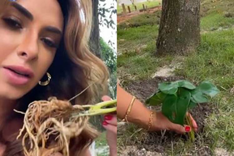 A influencer fez um stories no domingo (30) e divertiu os seguidores com a história. ela contou que plantou uma muda de Costela de Adão de plástico em seu jardim. A modelo ficou cuidando da planta, como se ela fosse natural, por uma semana até perceber que ela era falsa.