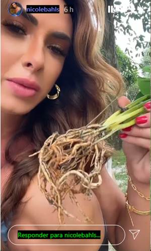 Morar eu um sítio no interior do Rio tem feito bem para Nicole Bahls. Mas a modelo vem se atrapalhando na hora de plantar. Ela divertiu os seguidores ao contar uma história inusitada, onde plantou uma muda de plástico.