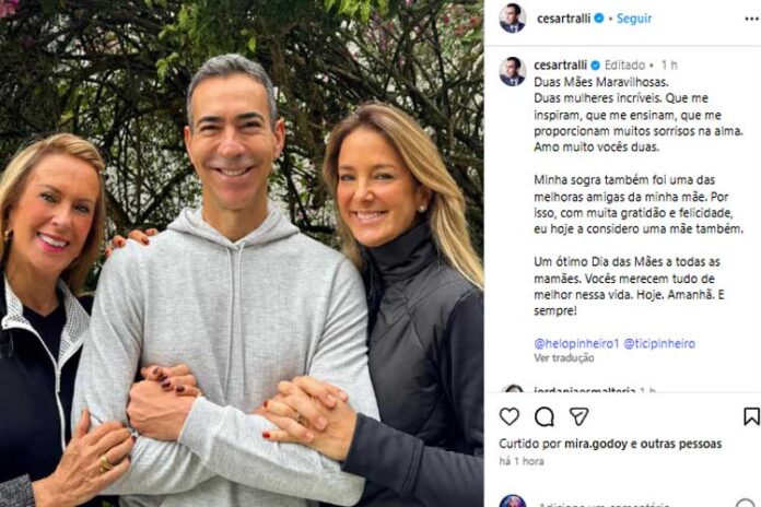 Cesar Tralli aproveitou o Dia das Mães para homenagear a mãe, Edna Tralli, falecida aos 74 anos em um acidente de avião, a esposa, Ticiane Pinheiro, e a sogra, Helô Pinheiro. Na mensagem publicada em seu perfil no Instagram, neste domingo (11), o jornalista abriu o coração.