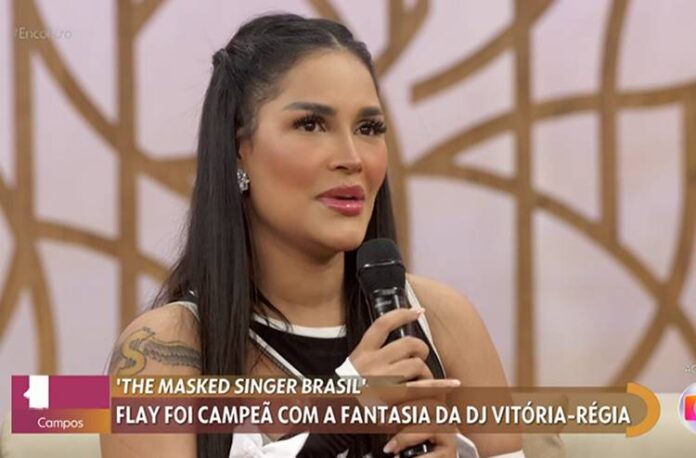 Dessa forma, ao vivo no ‘Encontro’, Flay comentou sobre a sua vitória e participação no ‘The Masked Singer Brasil’: “Era difícil a minha visão, uns 5%“, disse ela, ao falar sobre a sua fantasia de Vitória-Régia no programa. “Então, assim, cantar completamente fora da sua zona de conforto né. Então que, que eu me apagava? Eu entrei com essa vontade de ser campeã“, disse ela.