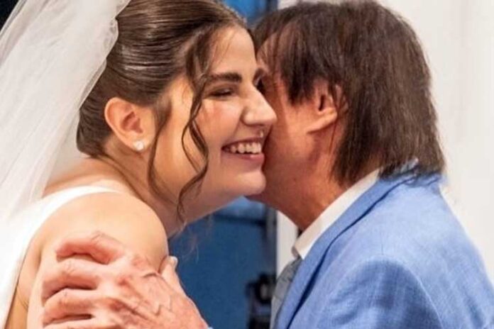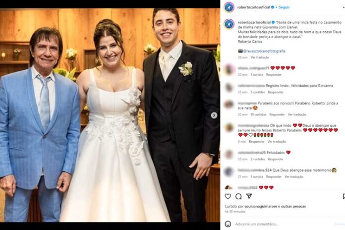 O rei Roberto Carlos compartilhou com seus seguidores no Instagram, nesta sexta-feira (18), registros do casamento da neta, Giovanna Braga, e aproveitou para se declarar e desejar felicidades ao casal.
