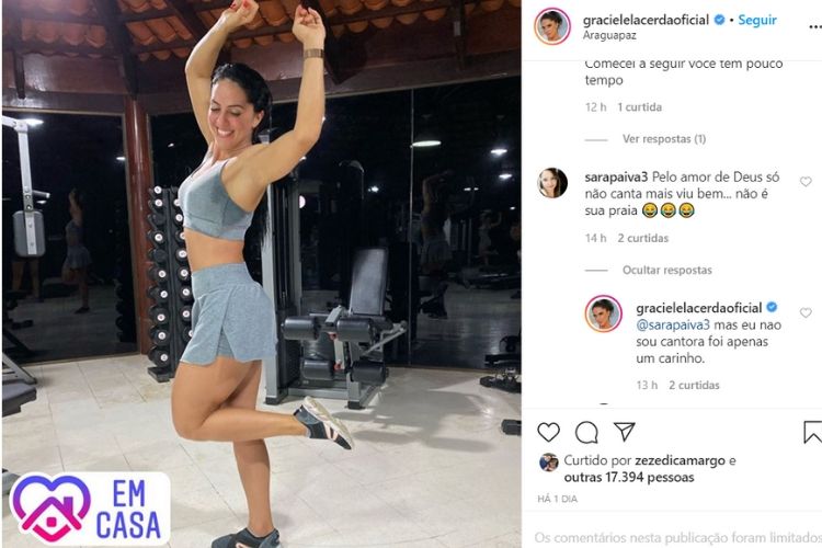 Mostrando que não leva desaforo e não deixa barato um comentário desses, a educadora física e jornalista fez questão de rebater a crítica da seguidora: “Mas eu não sou cantora, foi apenas um carinho”, disse ela.
