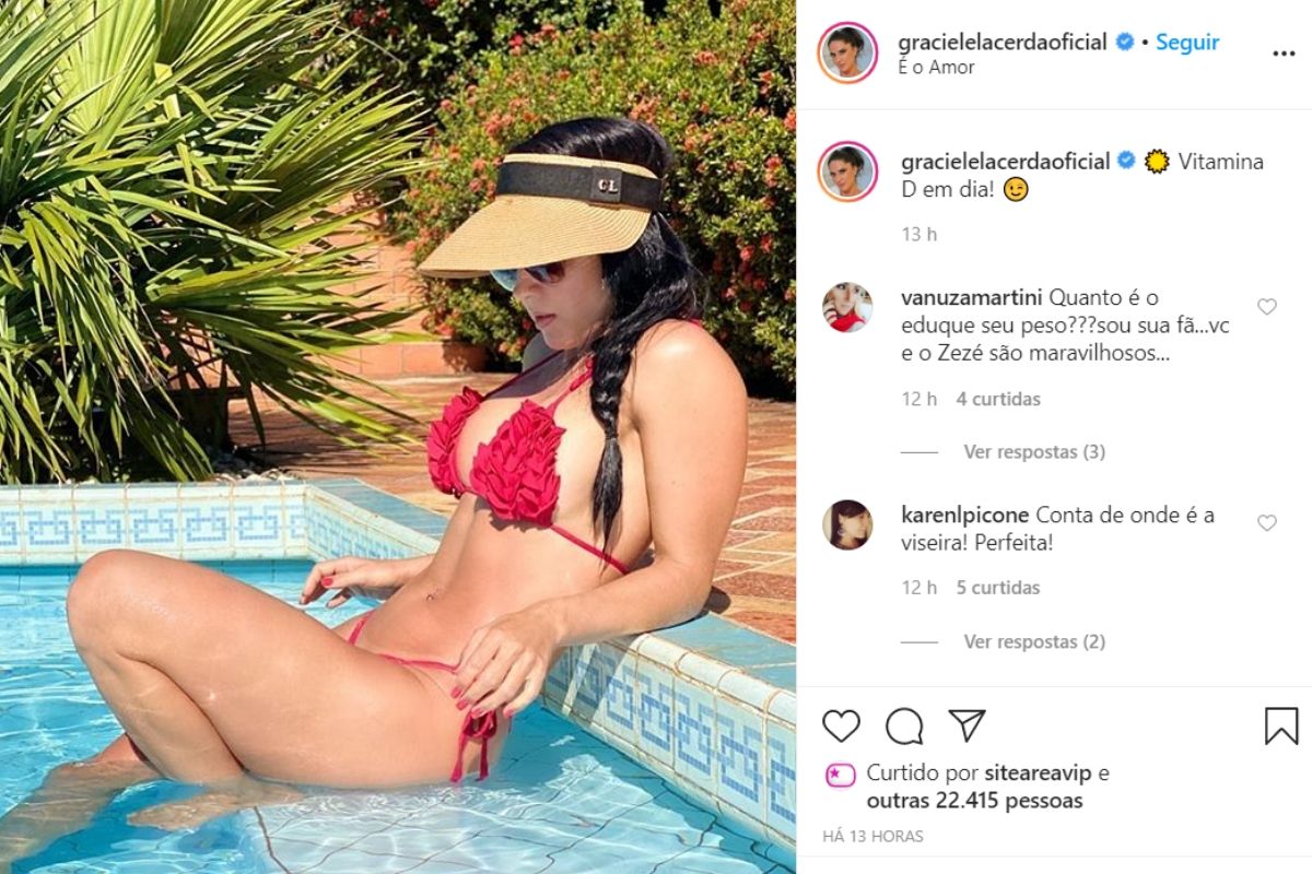 O cantor sertanejo Zezé di Camargo, é claro, também foi assunto nos comentários dos fãs de Graciele: “Como você é linda. O Zezé é tão sortudo”, disse um rapaz: “Zezé tem tudo com você”, escreveu outro.