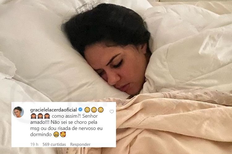 “Como assim? Senhor amado! Não sei se choro pela mensagem ou dou risada de nervoso eu dormindo”, escreveu a noiva do cantor sertanejo Zezé di Camargo, Graciele Lacerda, resposta a ele.