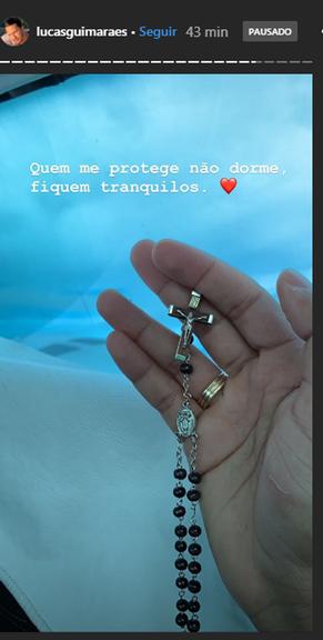 Através da função Stories do Instagram o jovem postou a imagem de um terço e fez um desabafo. “Quem me protege não dorme… fiquem tranquilos”, afirmou ele.