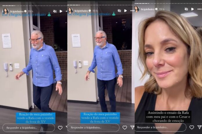 “Ele chegou para o ensaio. A reação do meu paizinho vendo a Rafa com o vestido da festa de 15 anos”, escreveu a famosa na descrição do vídeo. Adiante, a comunicadora detalhou seu sentimento: “Assistindo o ensaio da Rafa com o meu pai e com o César, e chorando de emoção”, expressou ela na legenda do vídeo no qual aparece visivelmente emocionada.