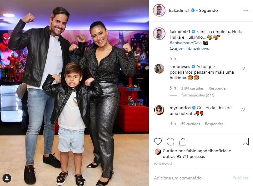 Foi então que nos comentários do post, Simone decidiu fazer uma proposta para o marido. “Acho que poderíamos pensar em mais uma hulkinha”, sugeriu ela.