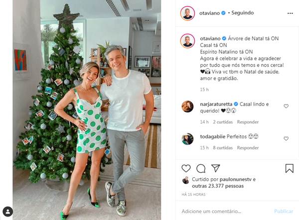 Otaviano Costa e Flávia Alessandra também exibiram a decoração natalina de última hora, nem por isso ficou atrás de outros artistas. “Árvore de Natal tá ON! Casal tá ON! Espírito Natalino tá ON! Agora é celebrar a vida e agradecer por tudo que nós temos e nos cerca! ❤ Viva vc tbm o Natal de saúde, amor e gratidão”, anunciou o apresentador em seu perfil no Instagram.