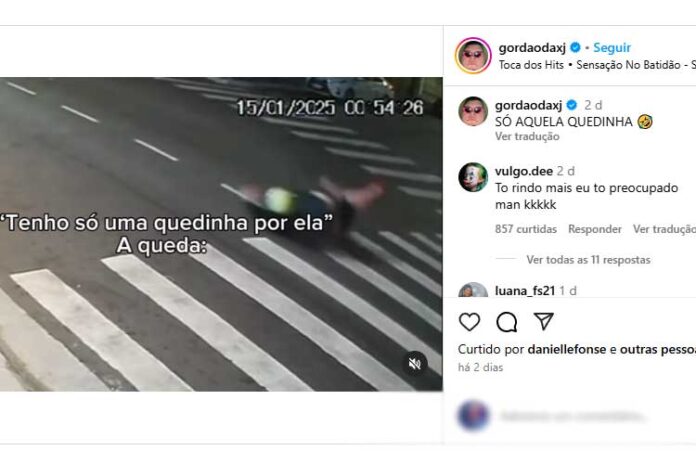 Um amigo ainda demonstrou preocupação nos comentários. “Pensa num susto que tomei quando vi você caindo, eita bicho que dá trabalho (Risos) ainda bem que tá tudo bem irmão”, escreveu. “Estou rindo, mas estou preocupado”, afirmou outro. Também tiveram aqueles que não gostaram das brincadeiras feitas com o ocorrido. “Tem cada comentário! Sem necessidade, cada dia que passa, o ser humano fica mais triste”, afirmou uma internauta.